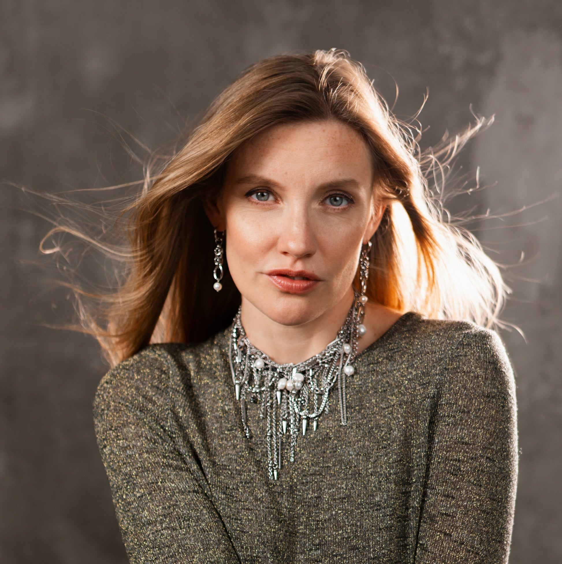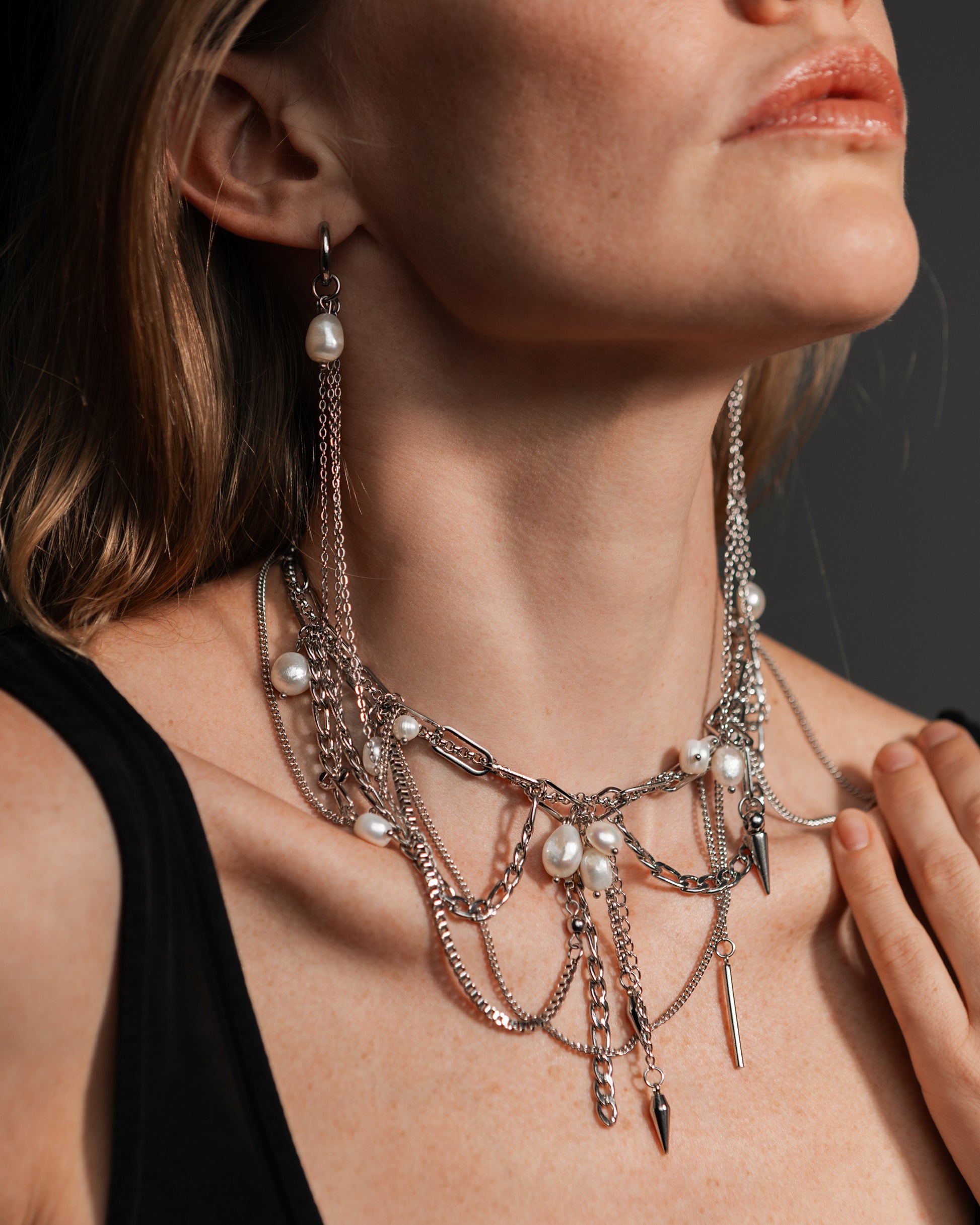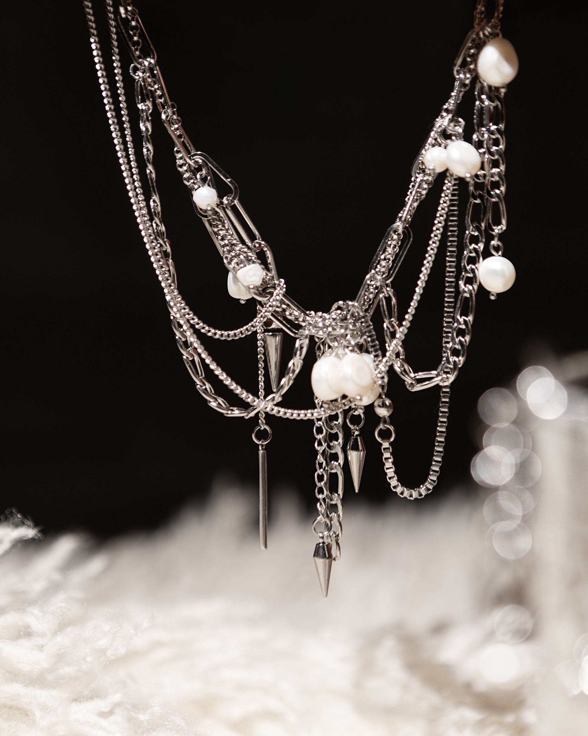 Powerful combination of pearls, steel and modular elements.