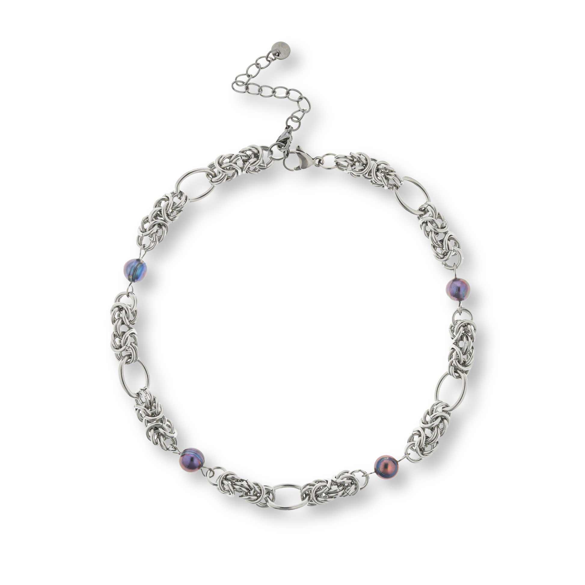 Perla negra entrelazada con acero inoxidable frío.