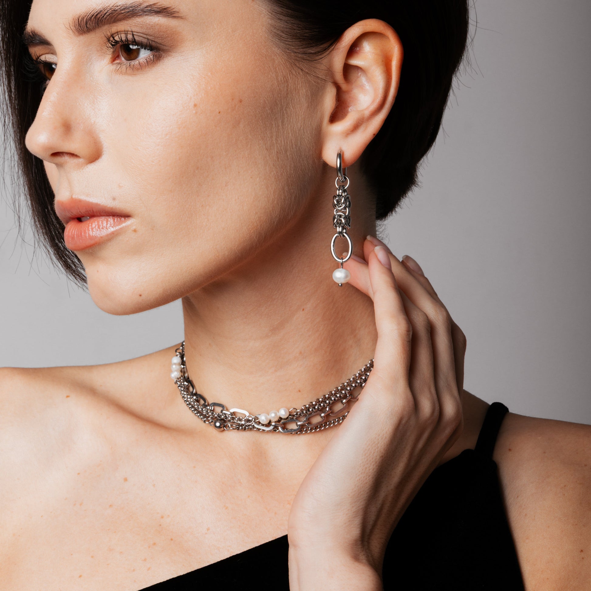 La misma idea de transformación infinita, ahora con perlas naturales — símbolo de luz y renovación.